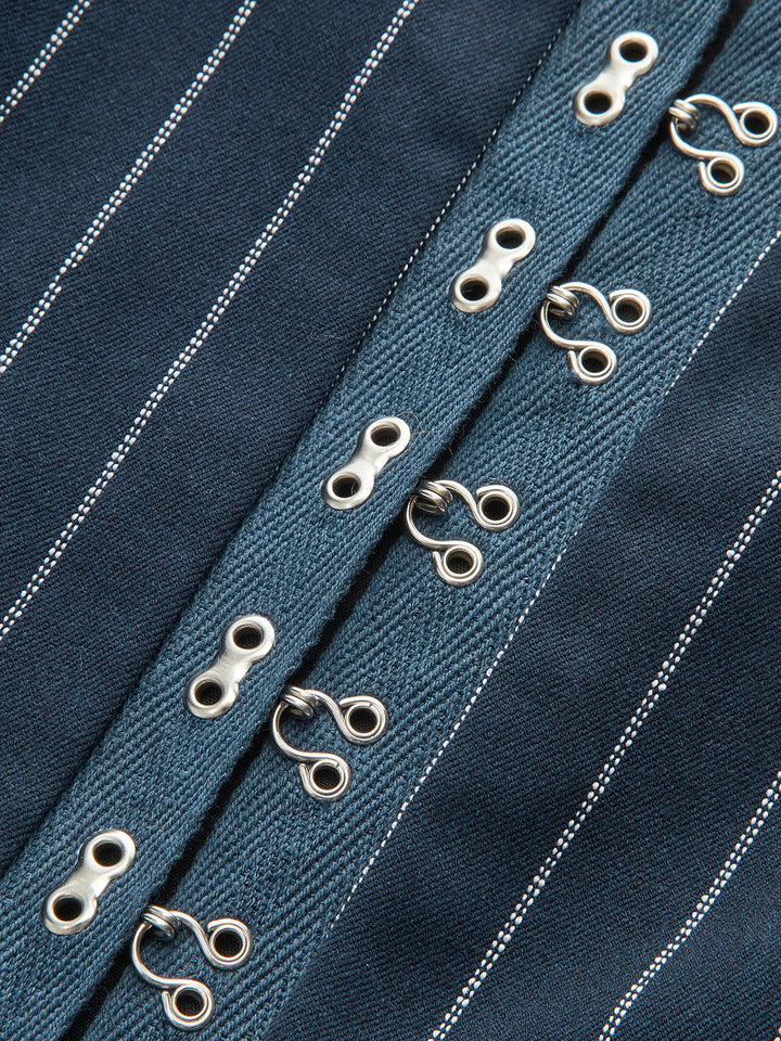 Kancalı Gözlü Çizgili Üst ve Etek Takımı