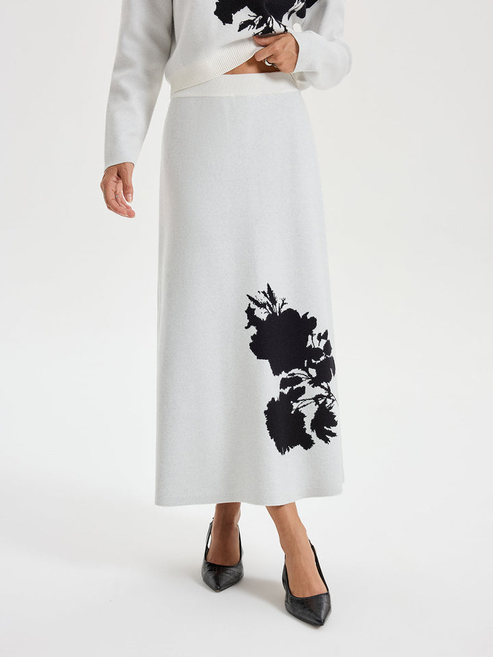 Mürekkep Yıkamalı Boyama Desenli Örme Uzun Etek