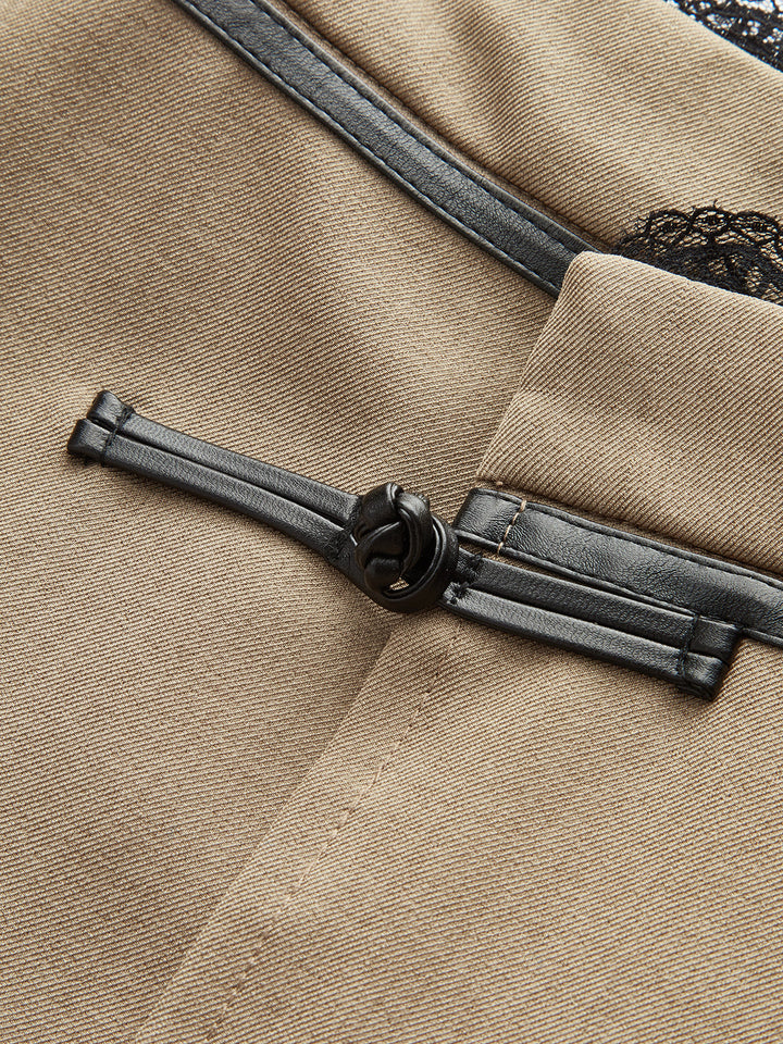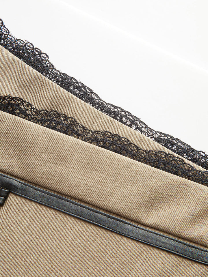 Dantel Kenarlı Suni Deri Tokalı Mini Etek