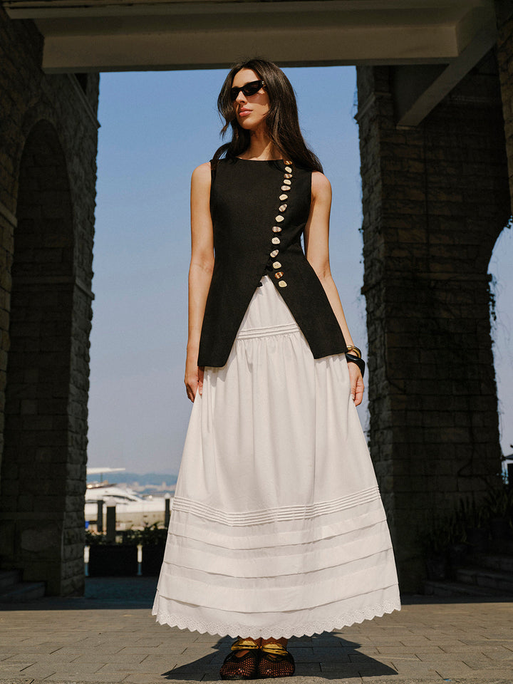 Keten Karışımlı Düğme Detaylı Yelek
