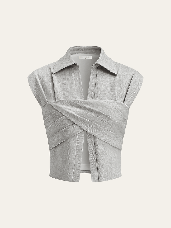 Çapraz Sarma Detaylı Keten Karışımlı Kısa Bluz