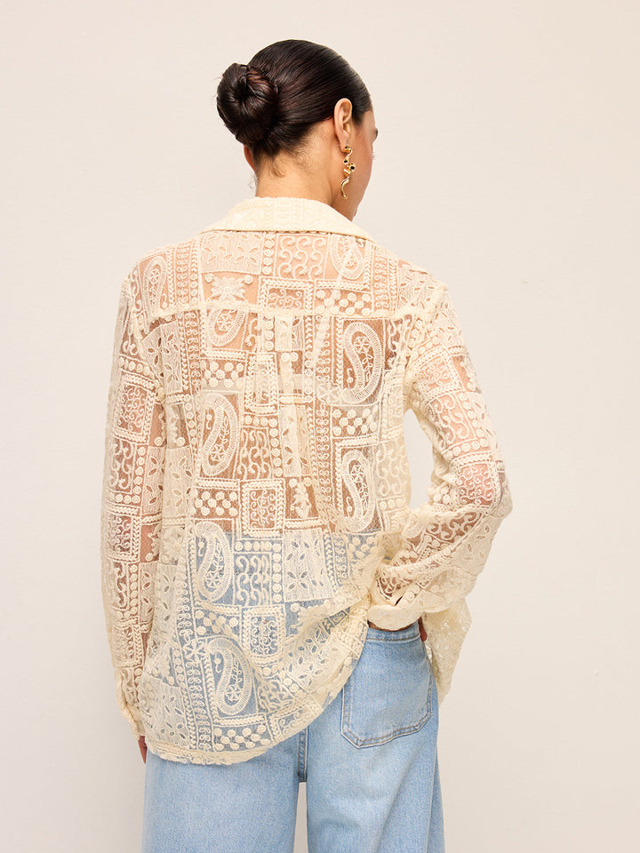 Uzun Kollu Dantel Polo Yaka Pamuk Karışımlı Gömlek