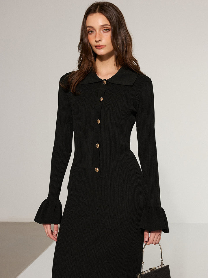 Denizkızı Etek Yaka Örgü Uzun Elbise