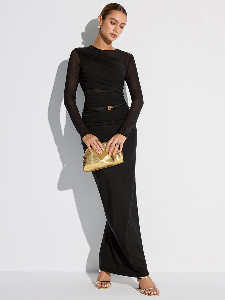 Metal Broş Yarı Şeffaf File Uzun Kollu Tişört