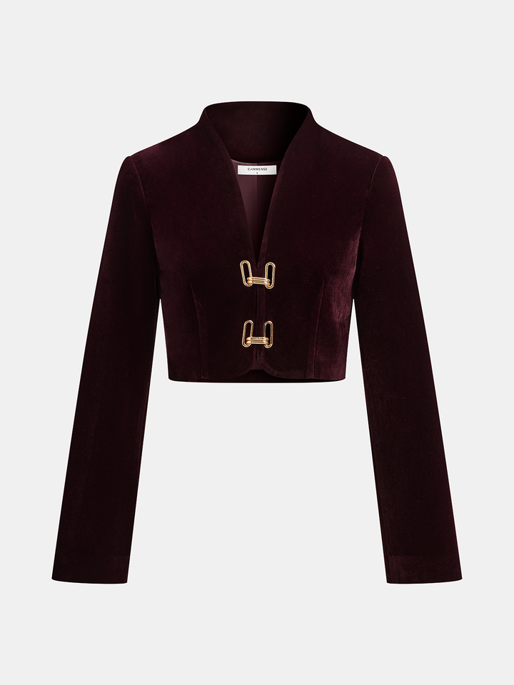 Metal Tokalı Kadife Dik Yaka Ceket