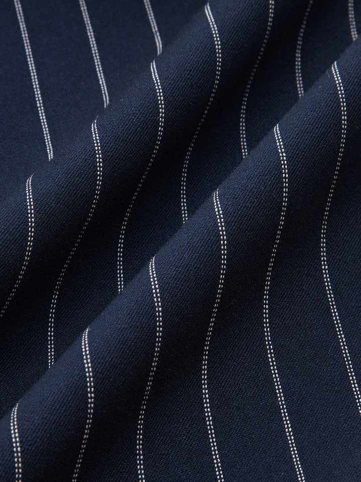 Metal Düğmeli Asimetrik Patlı İnce Çizgili Geniş Paça Pantolon