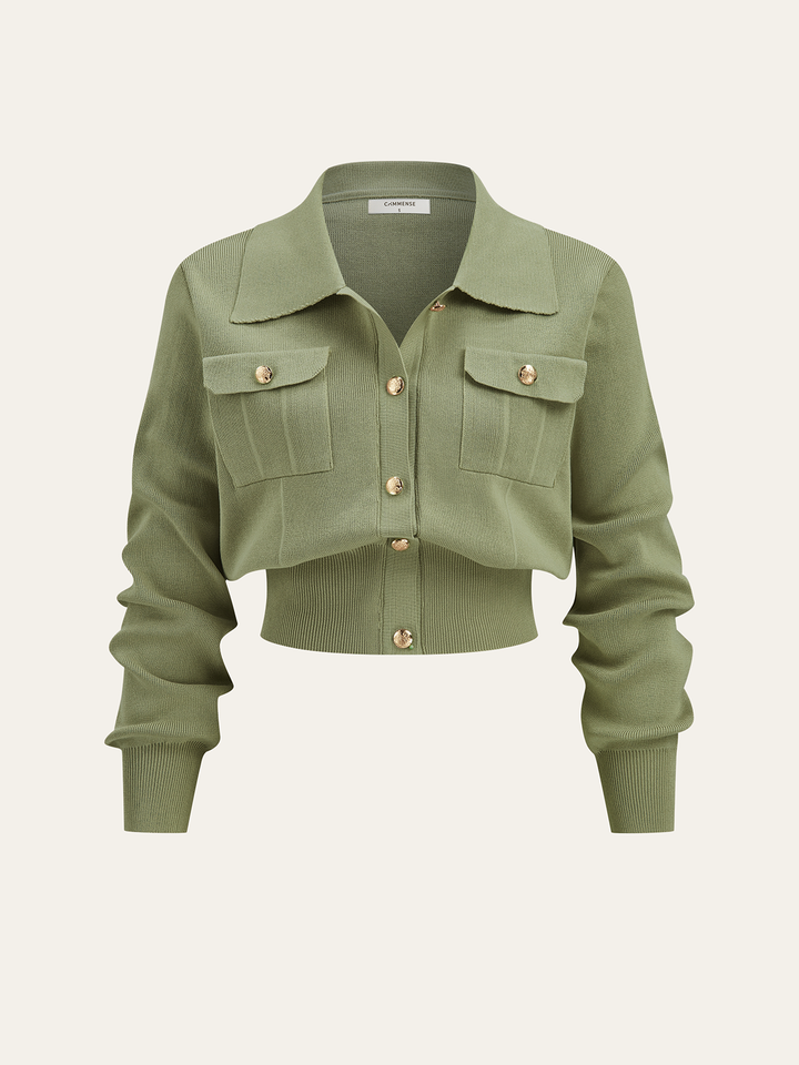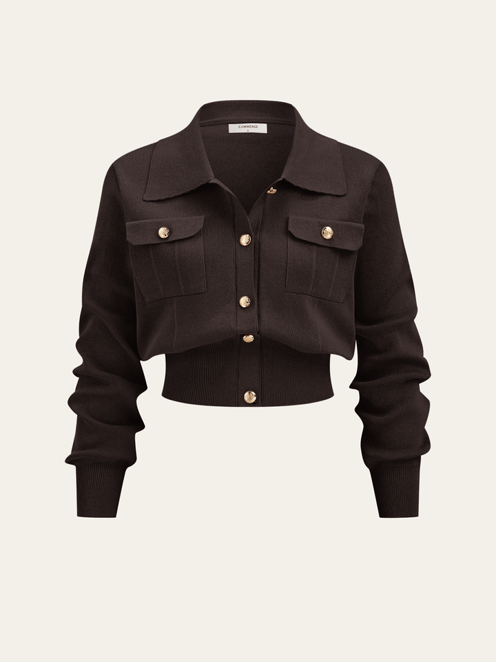 Metal Düğmeli Yakalı Hırka ve Midi Etek Takımı