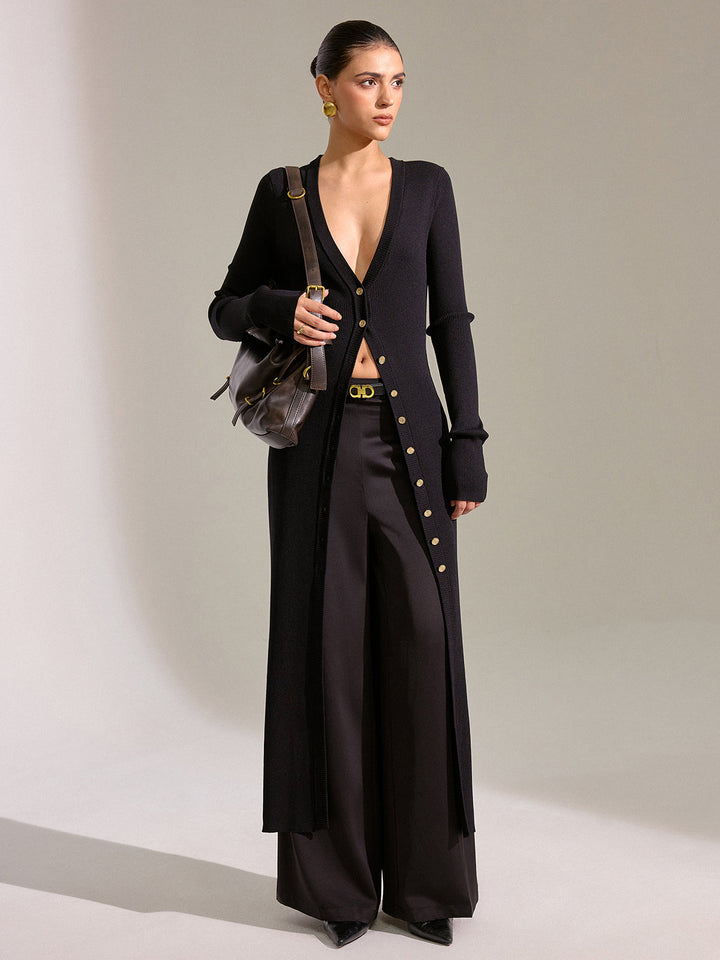 Metal Düğmeli Uzun Örgü Hırka Elbise