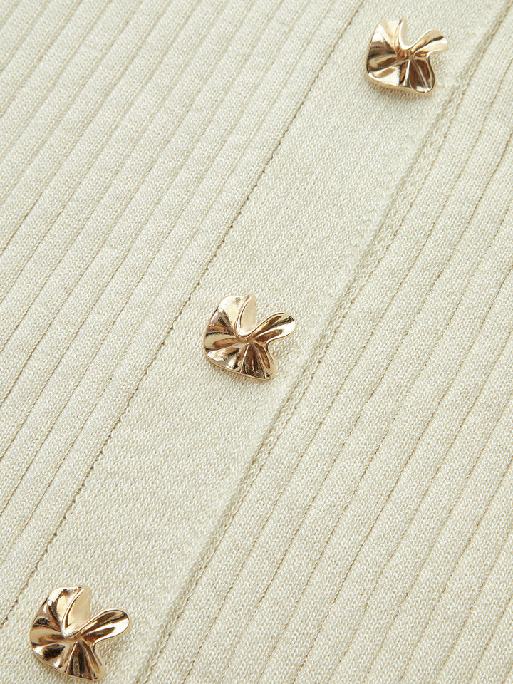 Metal Düğmeli Kaburga Örgü Gömlek Elbise