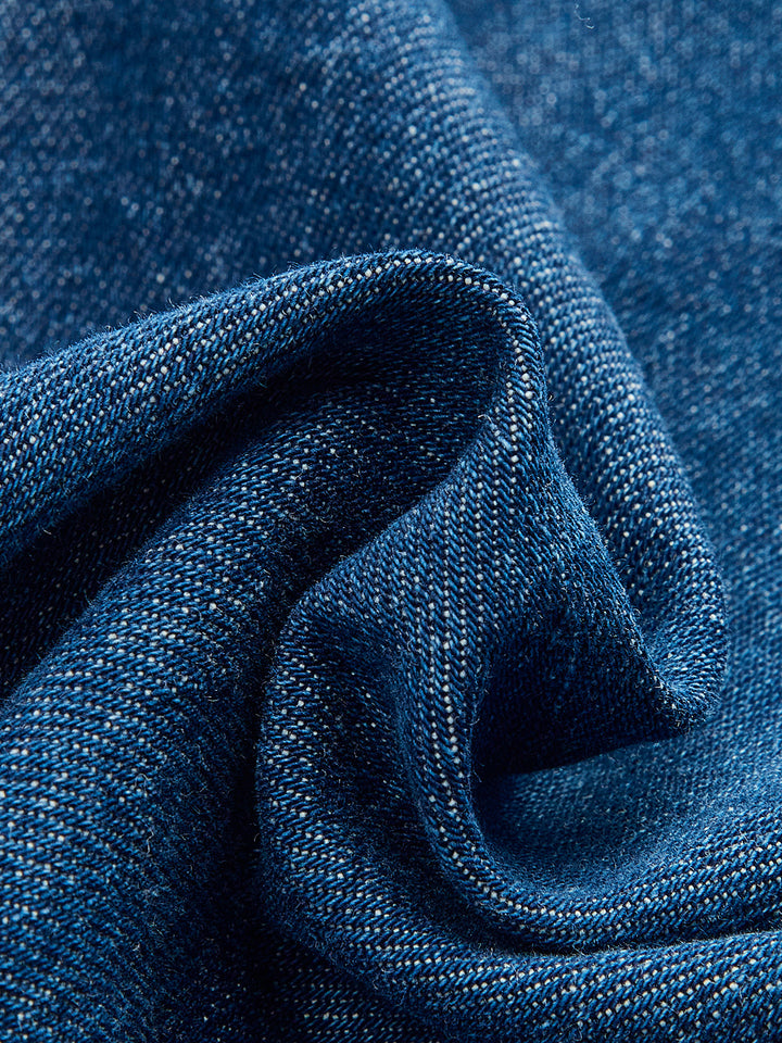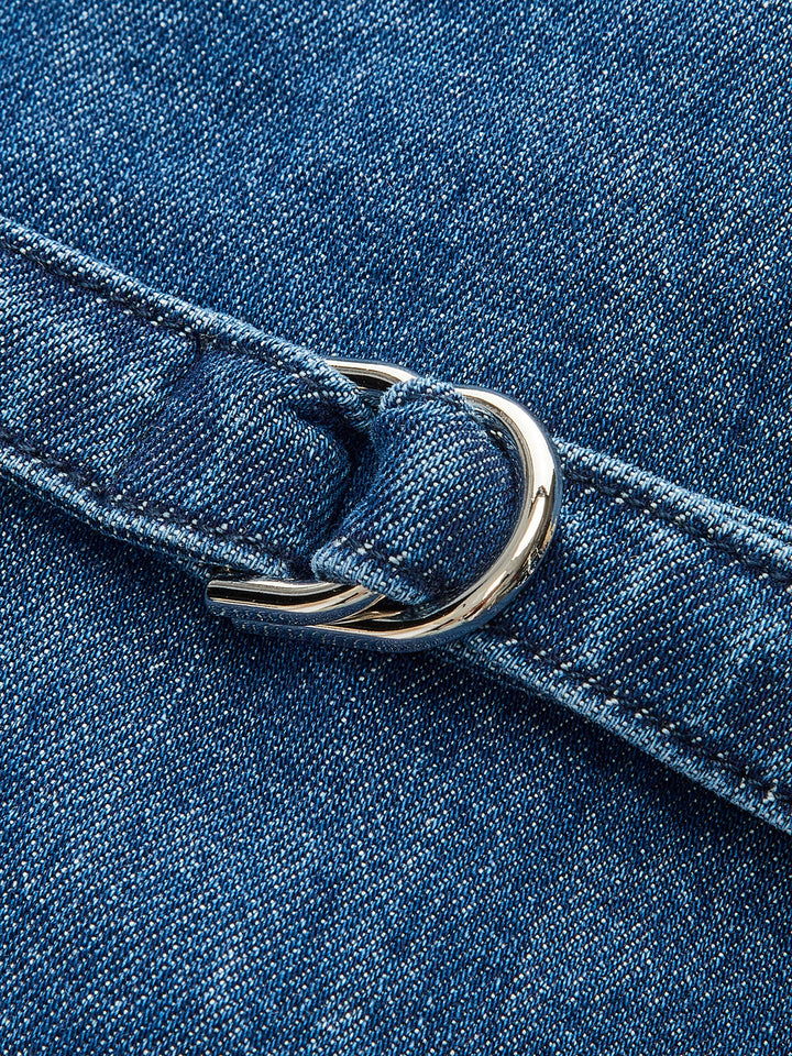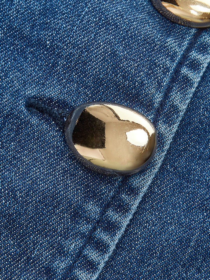 Metal Düğmeli Bağlamalı Kot V Yaka Şort Takımı