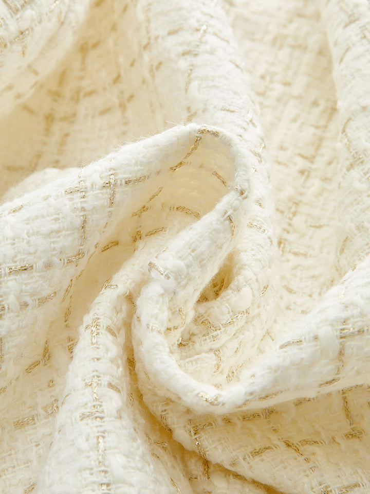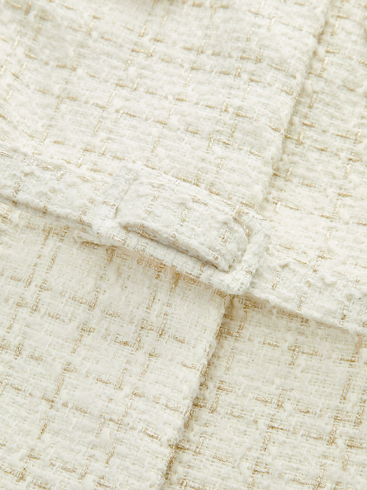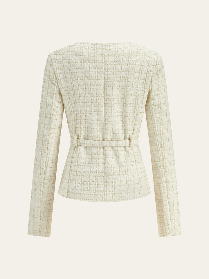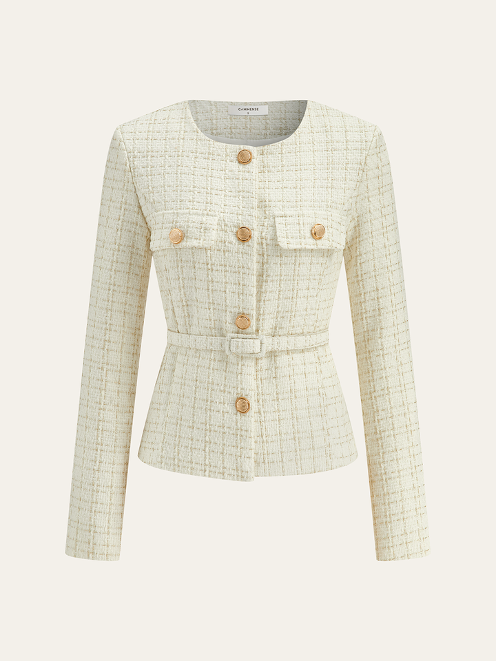 Metal Düğmeli Tweed Kemerli Blazer