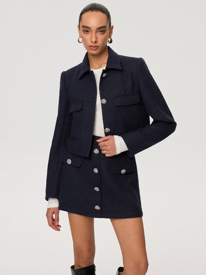 Metal Düğmeli Tweed Yaka Ceket