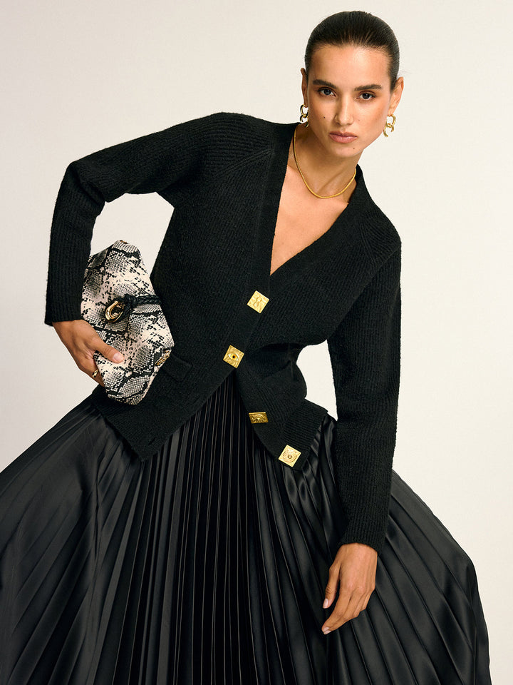 Metal Düğmeli V Yaka Yün Karışımlı Hırka