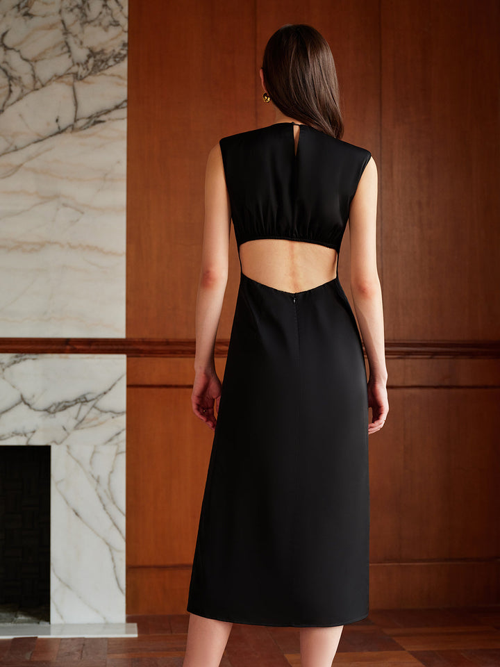 Metal Detaylı Sırtı Açık Pileli Askılı Elbise