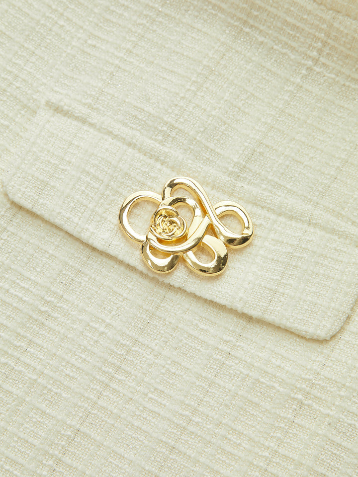 Metal Detaylı Tweed Kemerli Mini Elbise