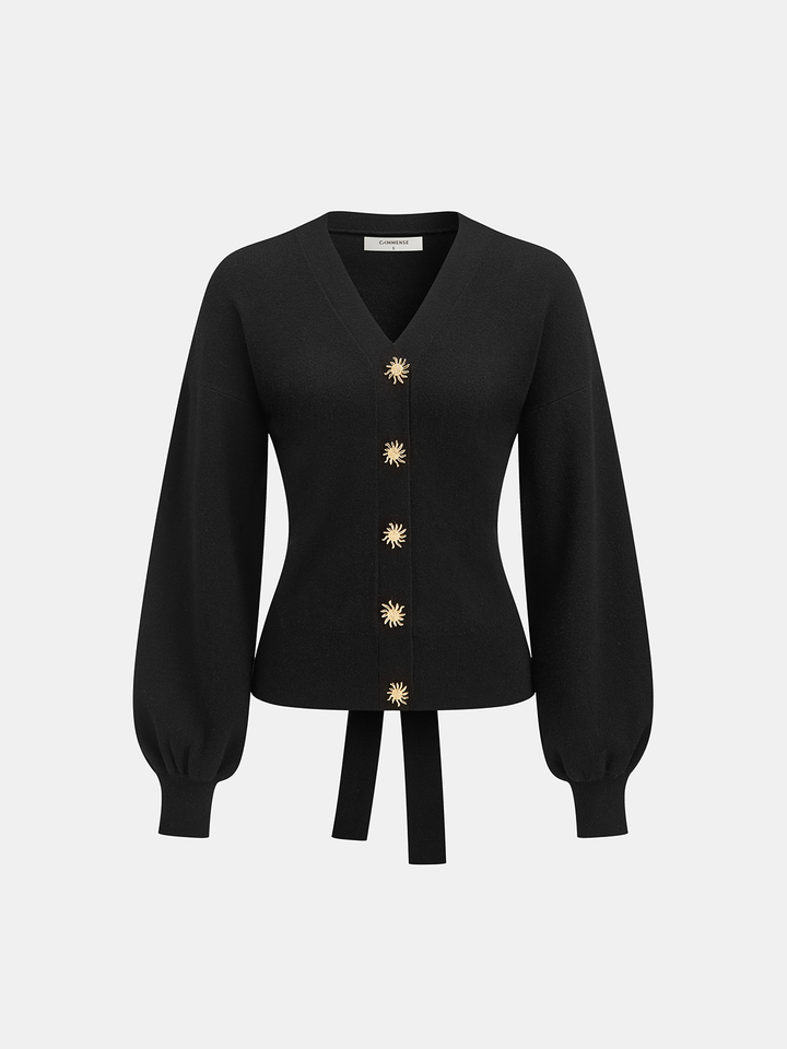 Metal Güneş Düğmeli Bağlamalı Hırka