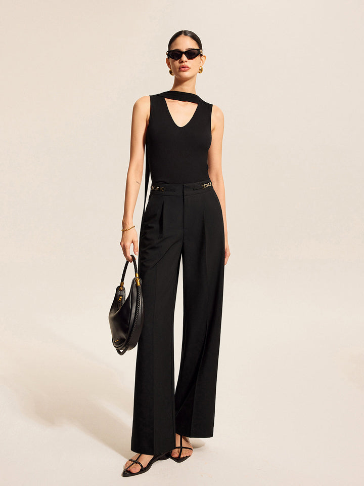 Zincir Detaylı Orta Bel Pileli Pantolon