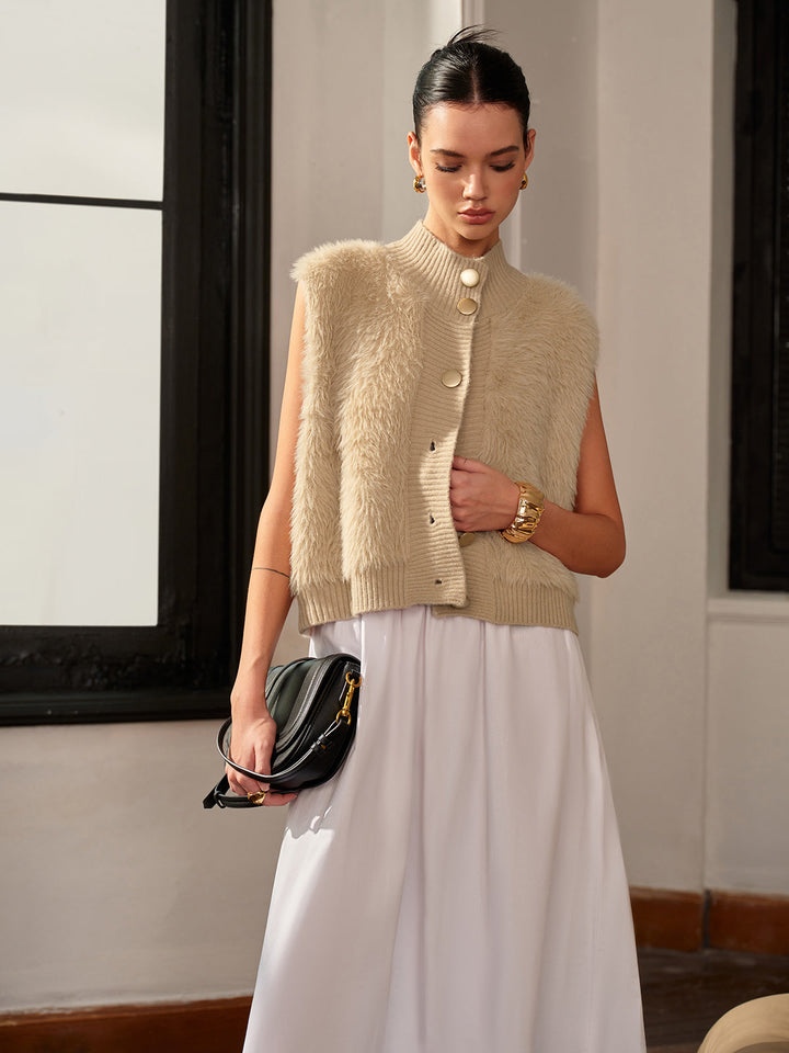 Balıkçı Yaka Düğmeli Tüylü Yelek
