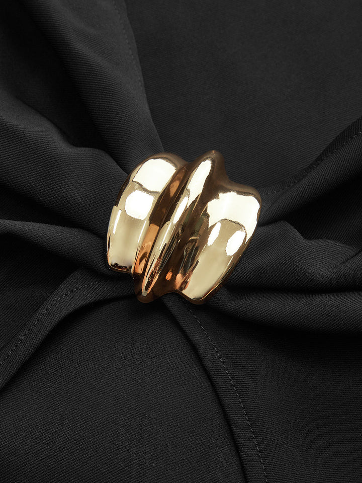 Metal Tokalı Detaylı Balıkçı Yaka Mini Elbise
