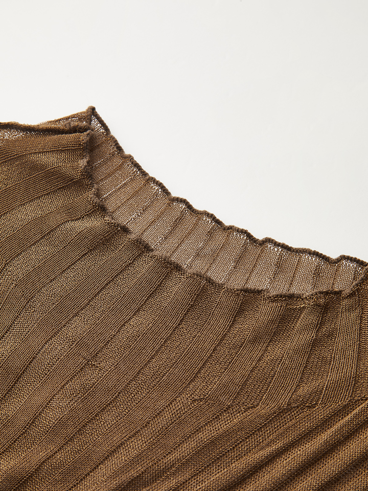 Balıkçı Yaka Şeffaf Panelli Kolsuz Üst