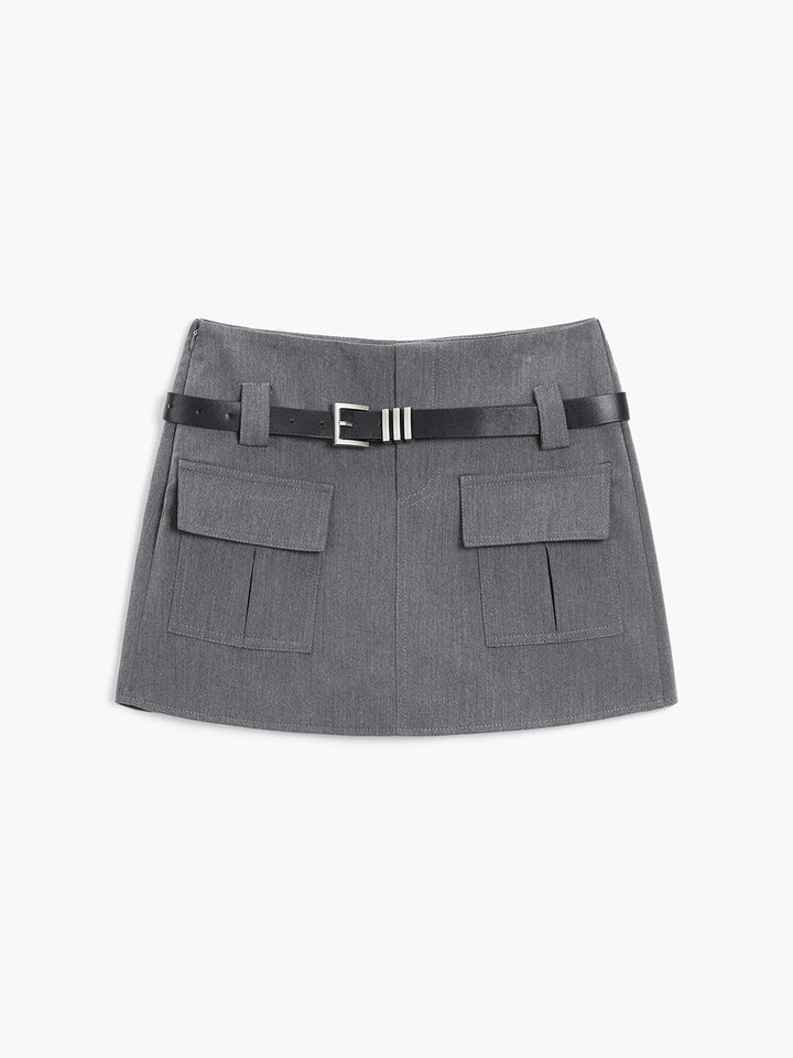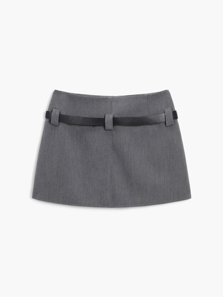 Modern Academia Kemerli Fermuarlı Mini Etek