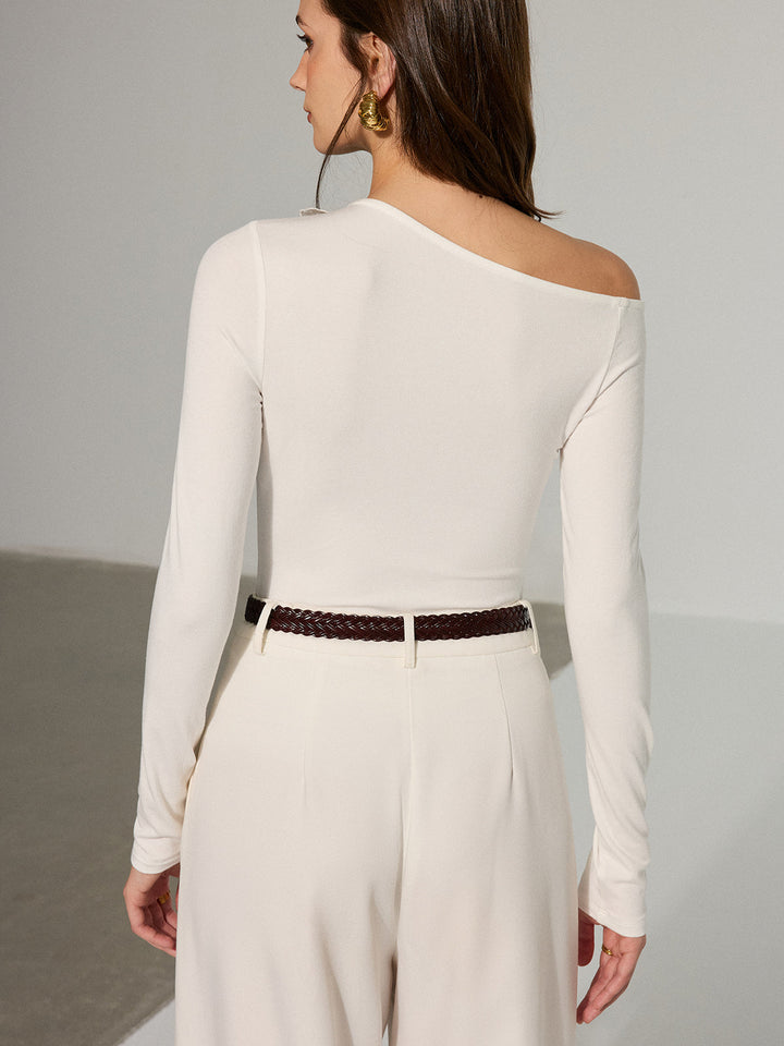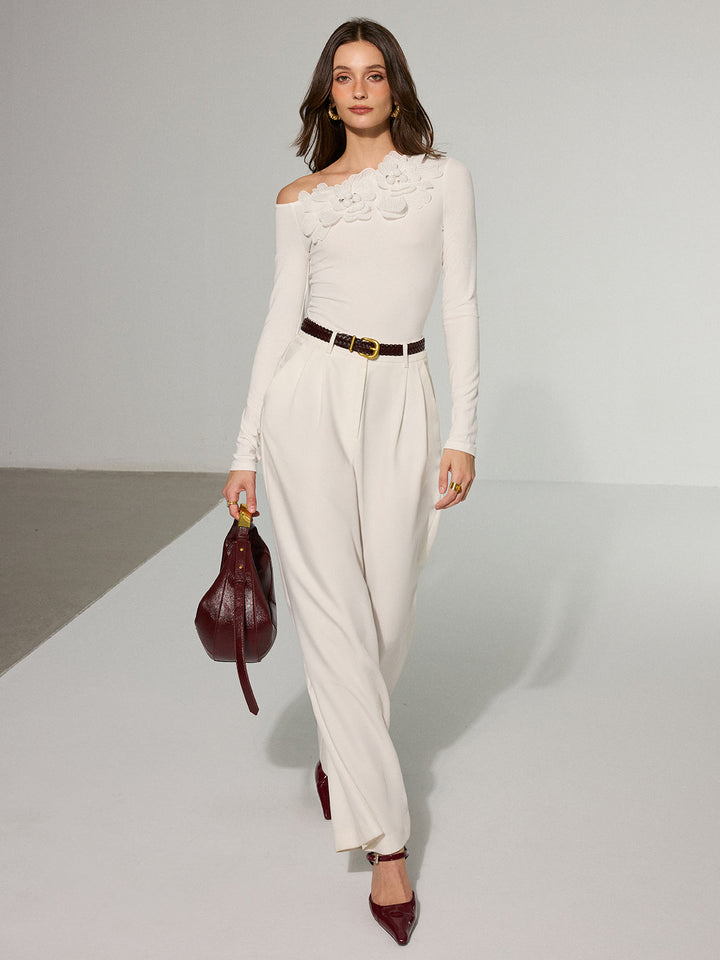 Omuzları Açık 3D Çiçek Desenli Tişört