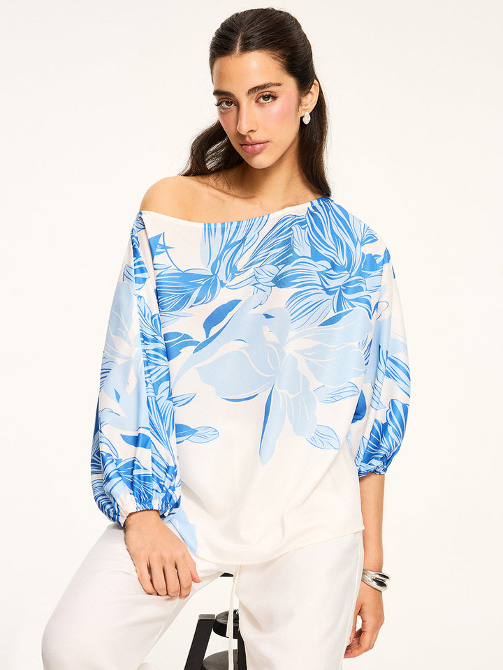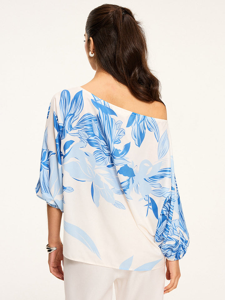Yarı Şeffaf Omuzdan Askılı Çiçek Desenli Bluz