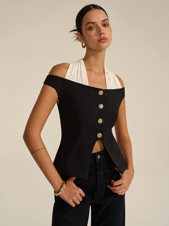 Omuzları Açık Halter Yaka Bluz