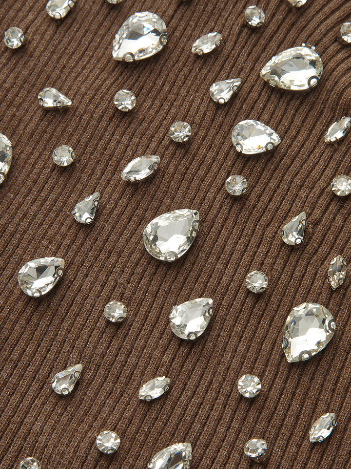 Omuz Açık Yapay Elmaslı Yün Karışımlı Örgü Üst