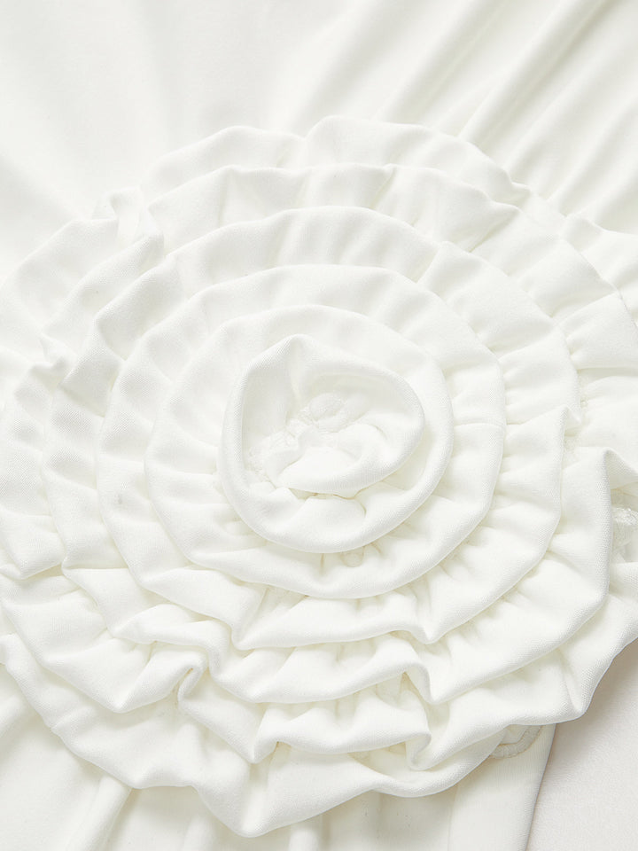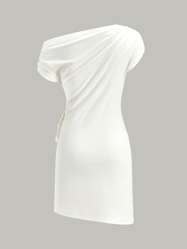 Rozet Detaylı Tek Omuzlu Büzgülü Elbise