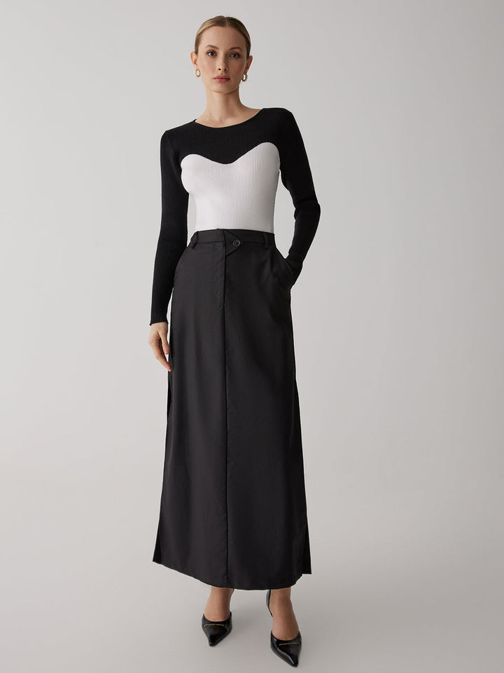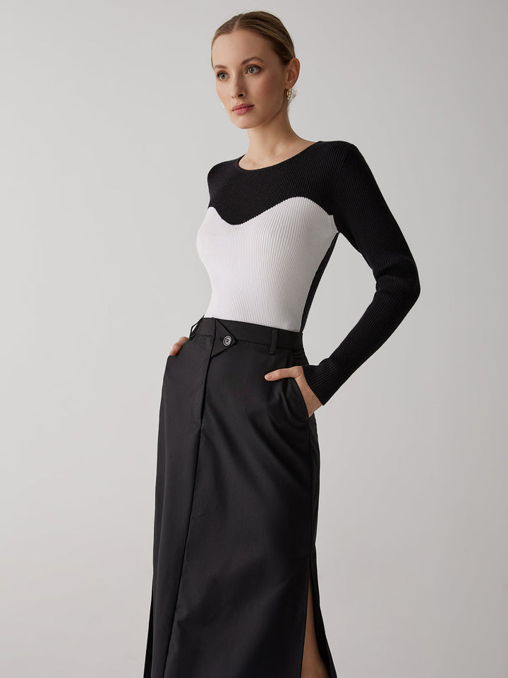 Patchwork Kontrast Yuvarlak Yaka Kazak