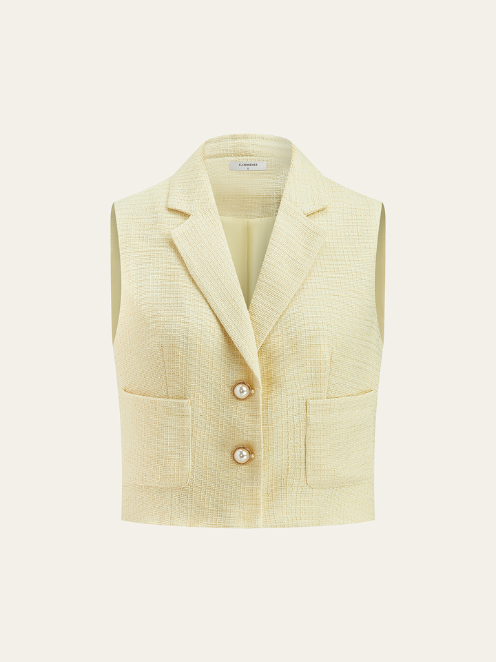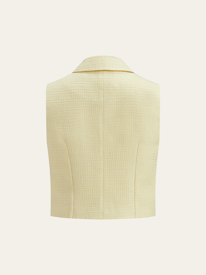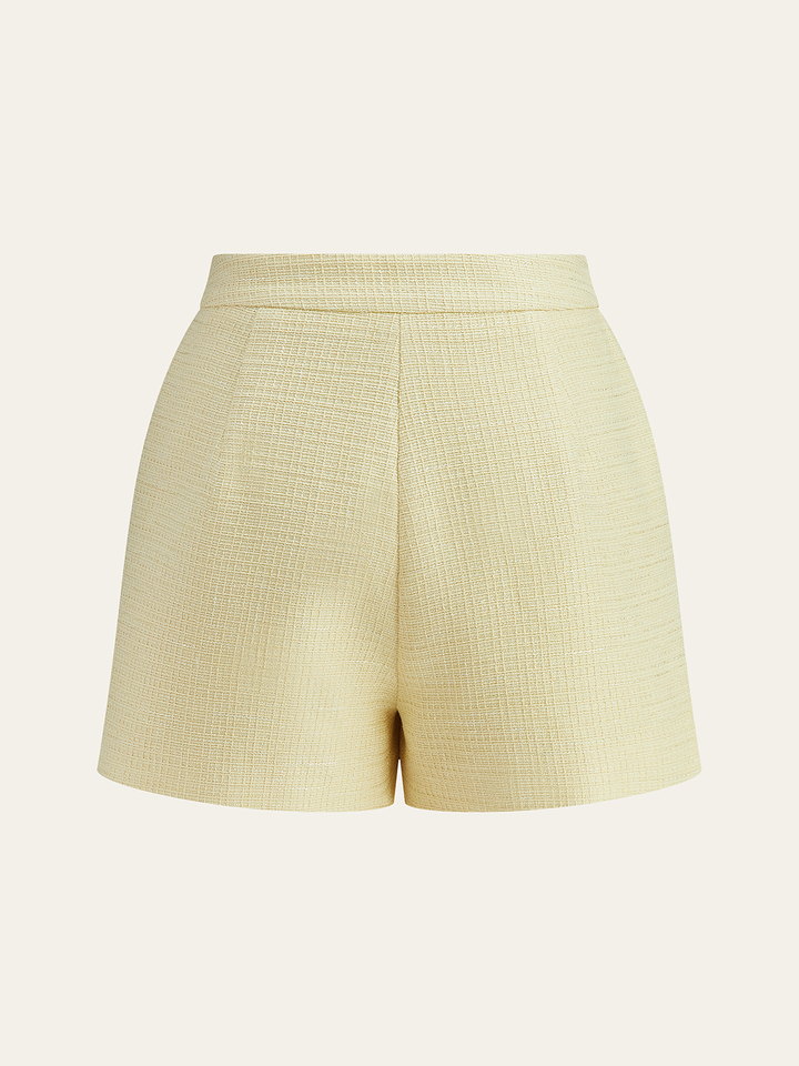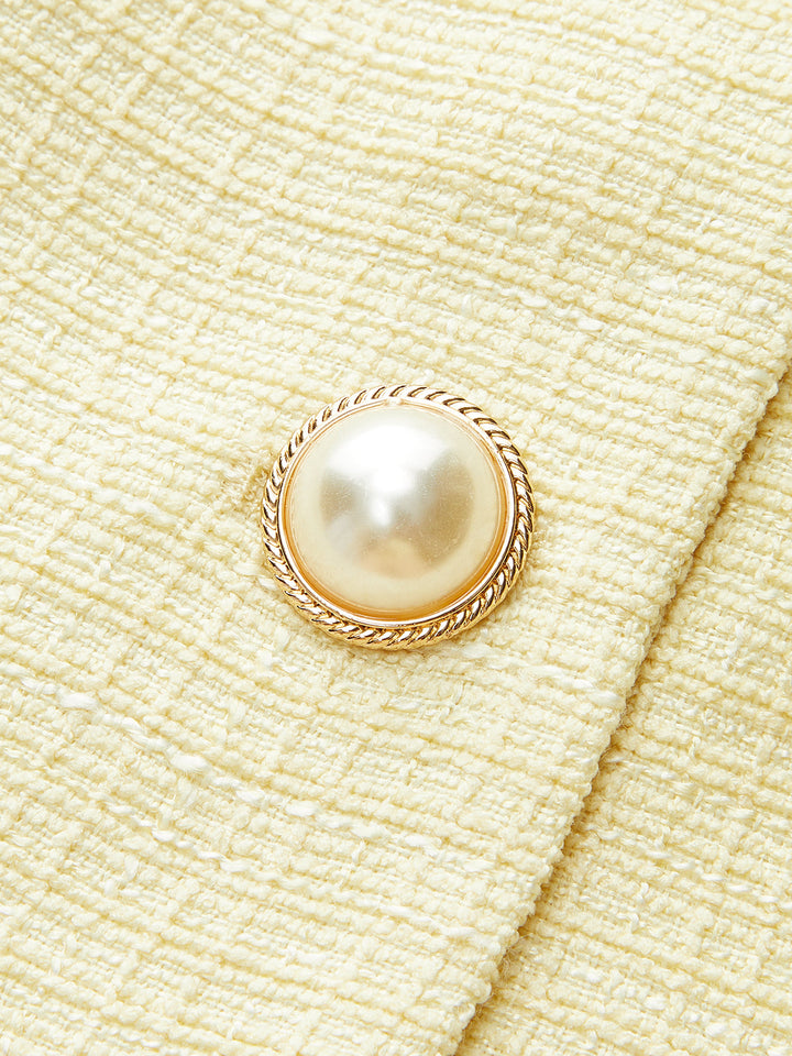 İnci Düğmeli Tweed Yelek ve Şort Takımı