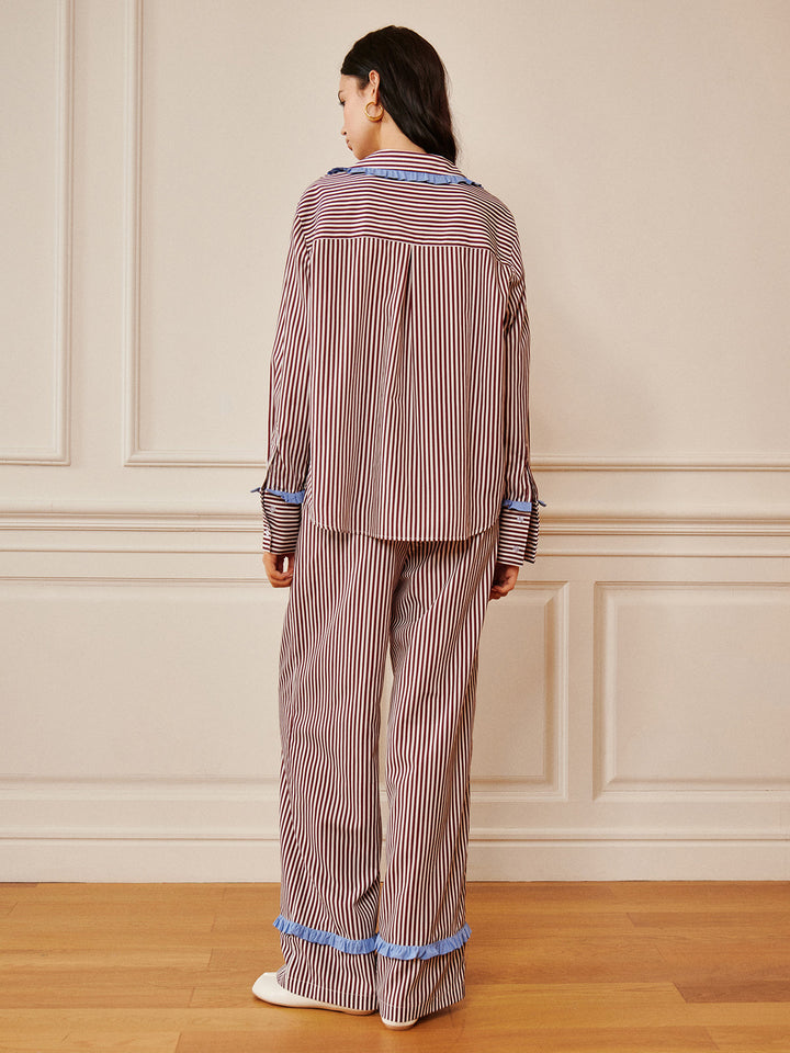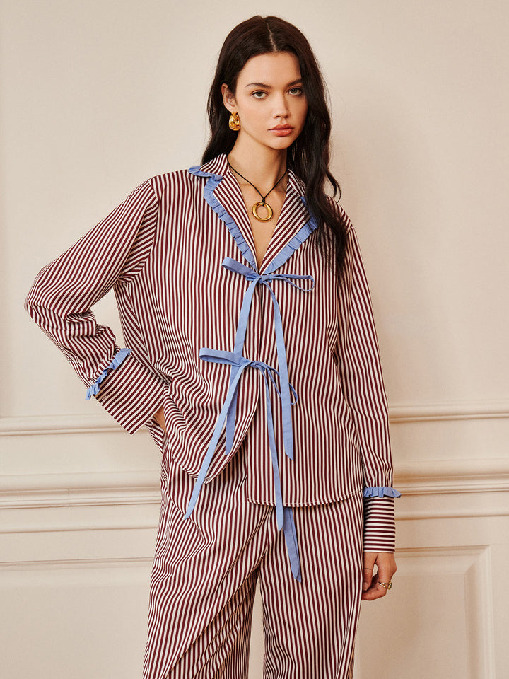 Çizgili Volanlı Önden Bağlamalı Gömlek