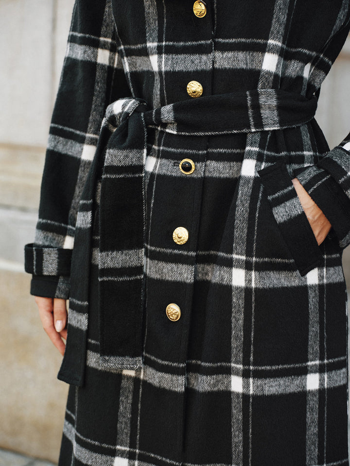Ekose Kemerli Yün Karışımlı Trençkot