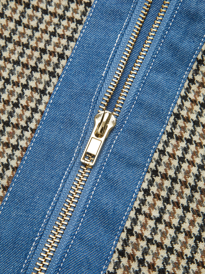 Ekose Kontrast Kesim Mini Elbise