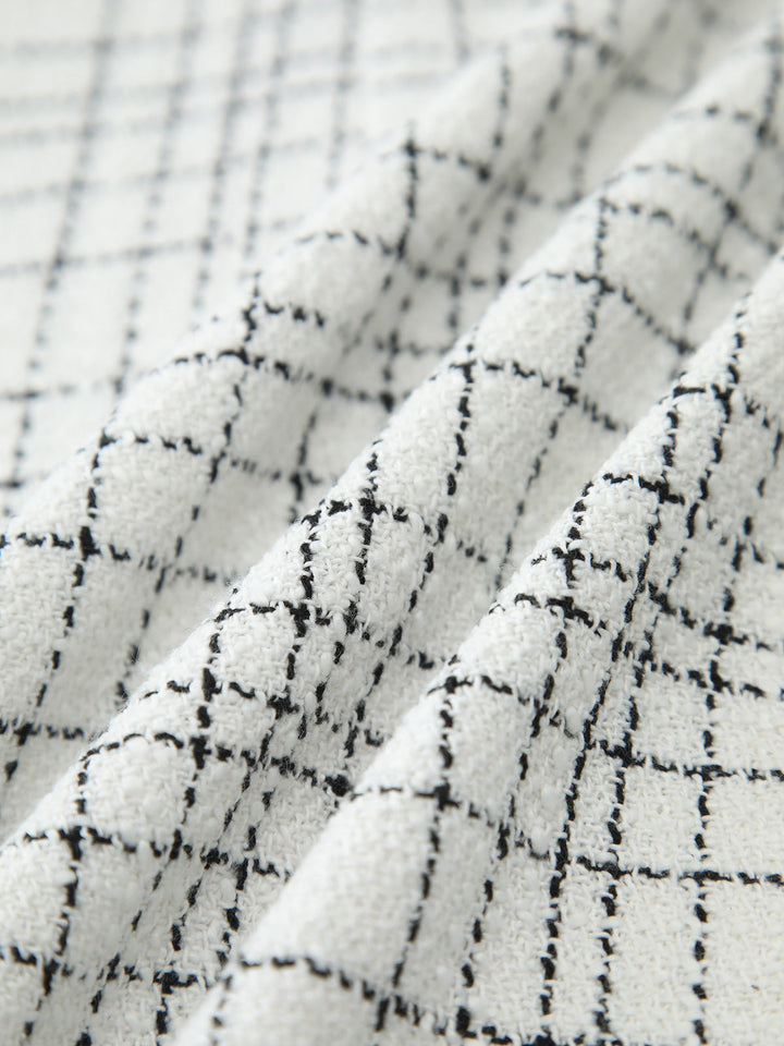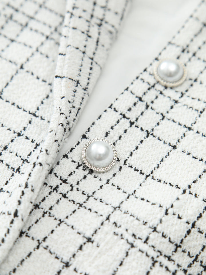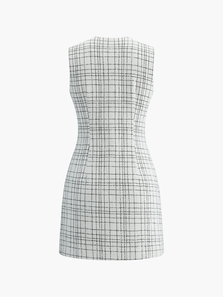 Ekose Desenli İnci Düğmeli Kolsuz Kısa Elbise