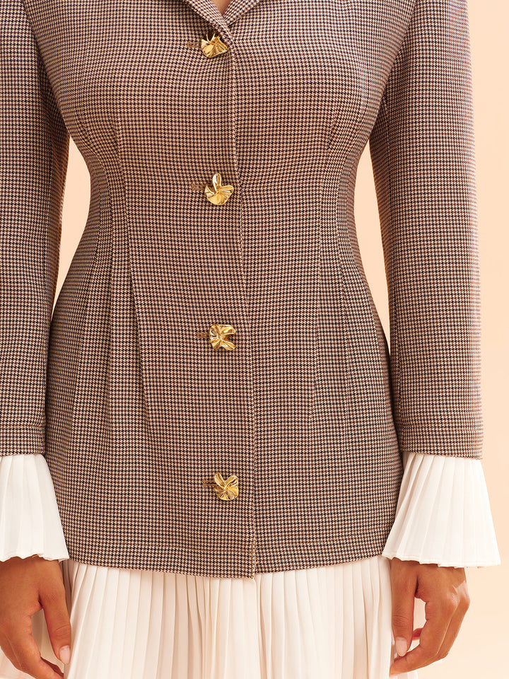 Pileli Etek Panelli Balık Sırtı Blazer Elbise