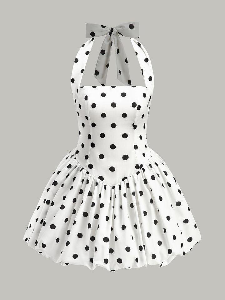 Puantiyeli Fiyonklu Askılı Fermuarlı Elbise