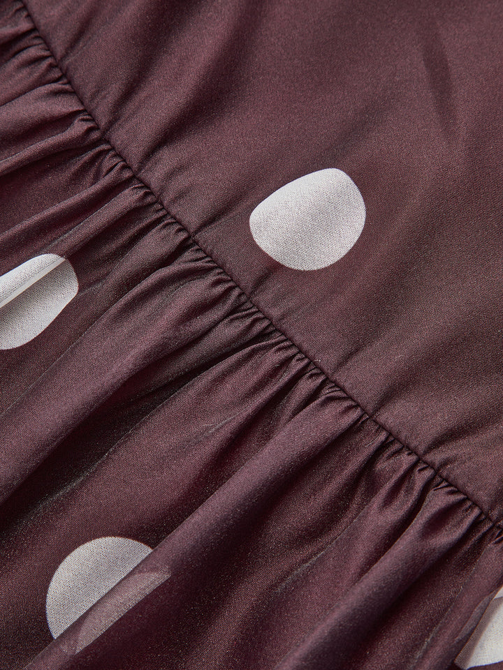 Polka Dot Kolsuz Şifon Uzun Elbise