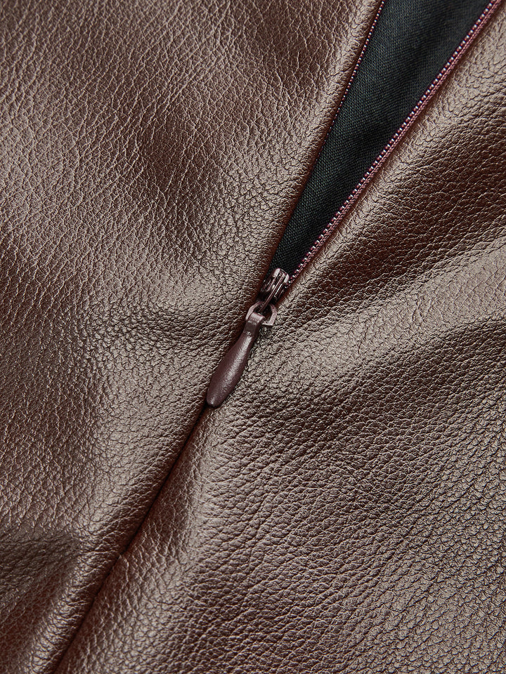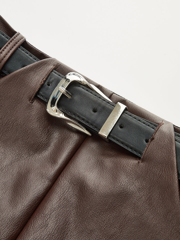 PU Deri Kemerli Mini Etek