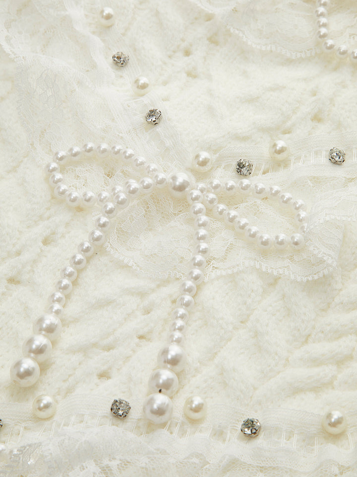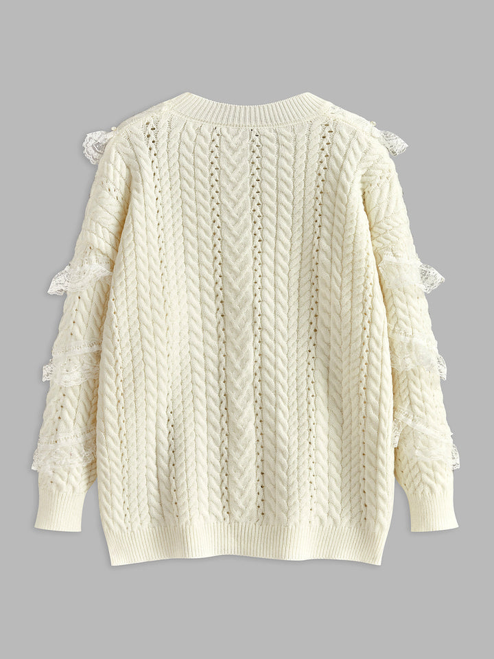 Romantik Dantel Kenarlı Boncuklu Kazak