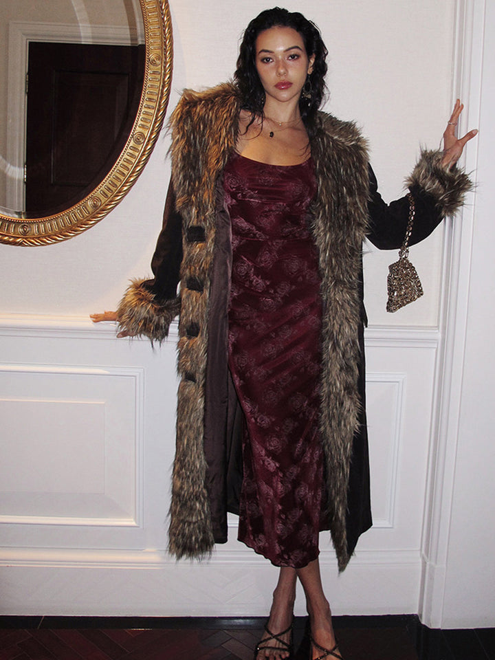 Gül Kadife Askılı Elbise
