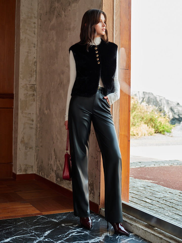 Yuvarlak Yaka Düğmeli Suni Kürk Yelek