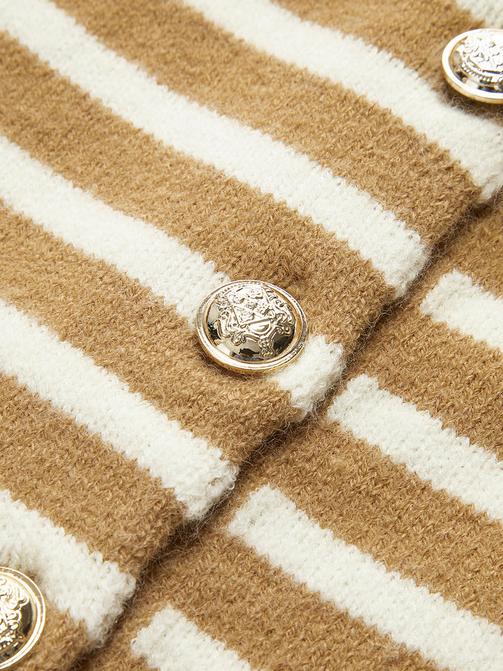 Yuvarlak Yaka Çizgili Hırka