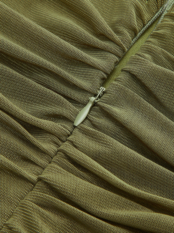 Büzgülü Asimetrik File Etek Ucu Elbise