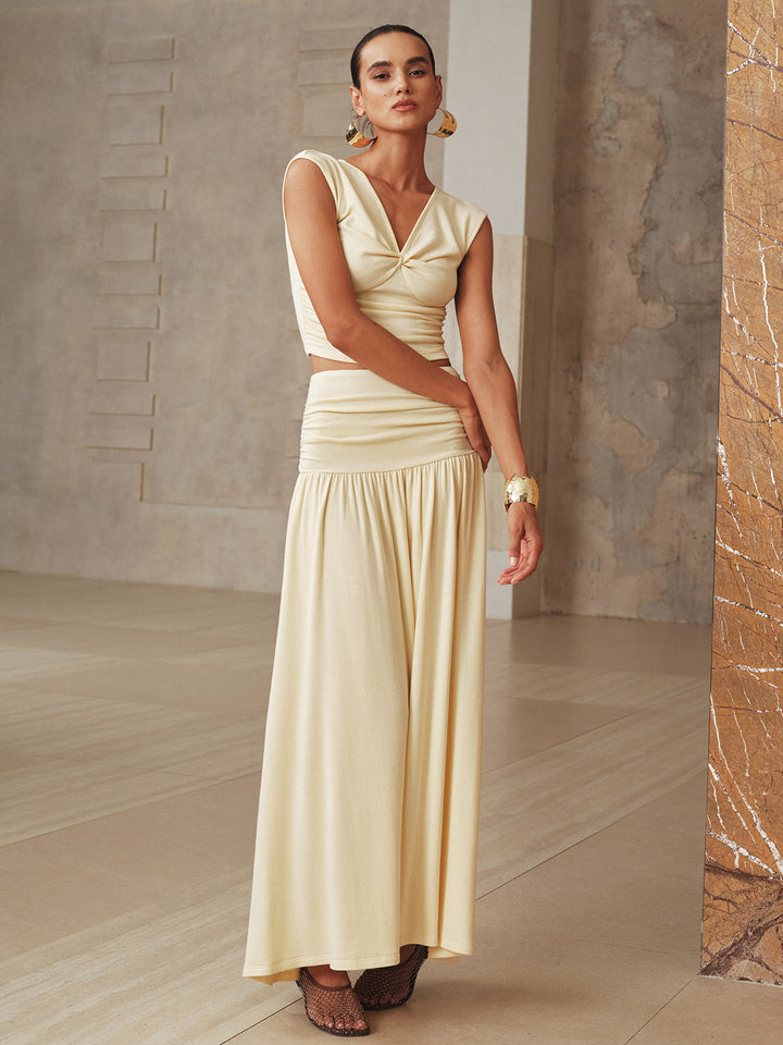 Büzgülü Kısa Üst ve Uzun Etek Takımı