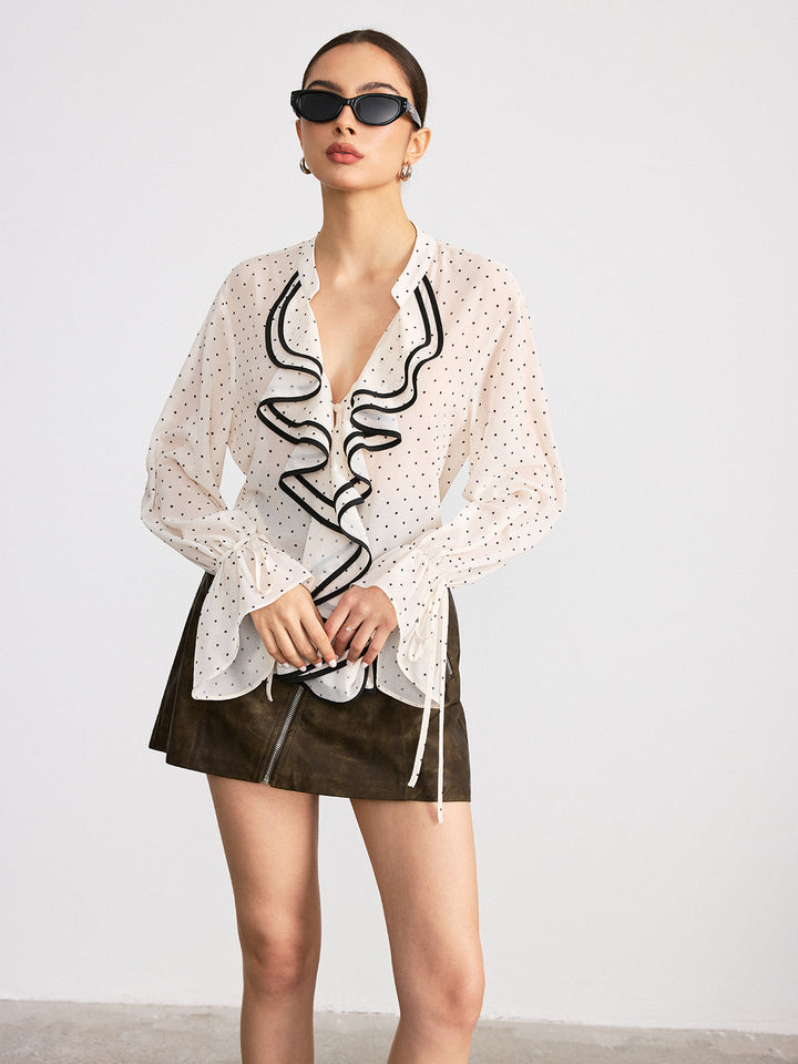 Ruffle Polka Dot Uzun Kollu Gömlek