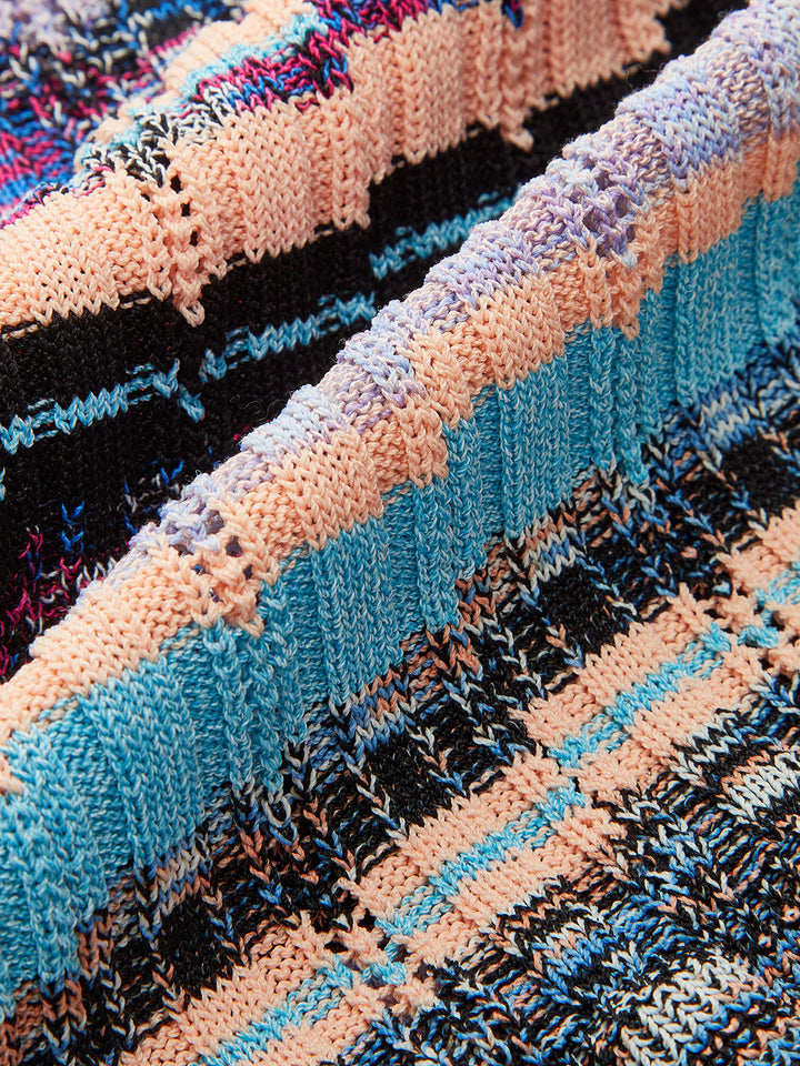 Fırfırlı Etek Renkli Çizgili Örgü Üst