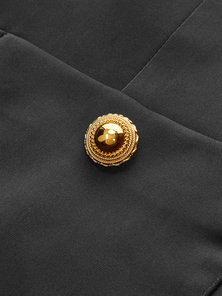 Kemersiz Volanlı Etek Metal Düğmeli Mini Elbise