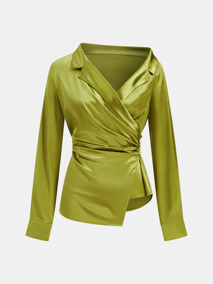 Yan Düğmeli Saten Asimetrik Yakalı Gömlek